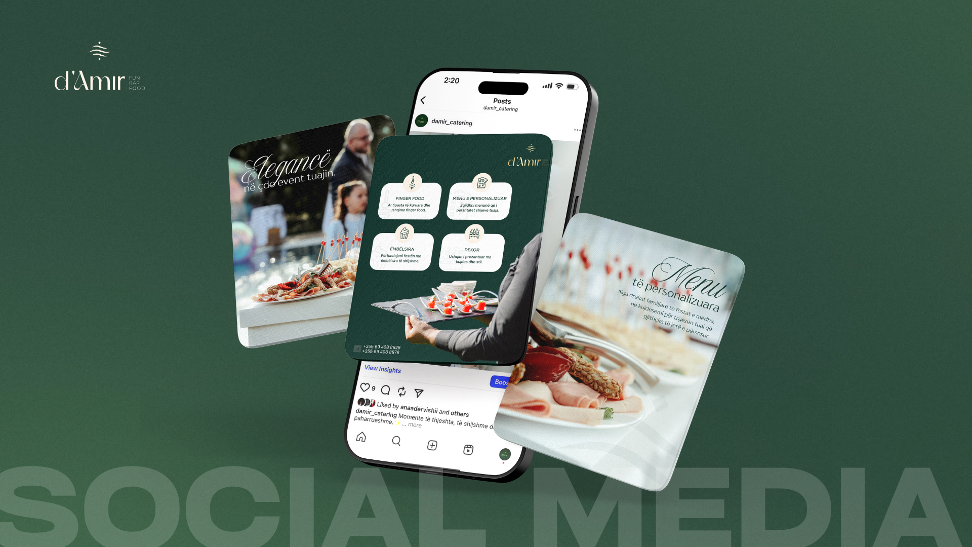 With a clear vision to create unforgettable culinary experiences in Albania, d’Amir Catering emerged as one of the leading names in premium catering and event gastronomy. Seeking to expand its presence and share its passion with a wider audience, the team at Digital Euphoria eagerly embraced the challenge. The goal was simple: to build a strong visual and content identity that reflects d’Amir’s values, exquisite flavors, and commitment to excellence. Our team identified the unique elements of d’Amir — from its fresh ingredients, creative menu offerings, and personalized service — and transformed them into creative campaigns and dynamic posts that not only informed but also inspired the audience. By combining elegant visuals, impactful messaging, and a modern communication style, Digital Euphoria gave voice to d’Amir’s mission and helped build an engaged community around delicious moments and memorable events.